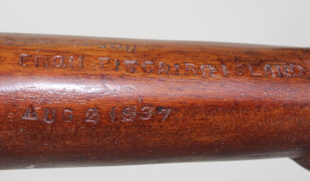 This is the earliest dated Pitcairn curio we have seen. 2 August 1937. Interestingly R.P.Clark writing in the Western Mail, Perth on 16.9.1937 reports after spending 25 years on the Island that the Men are hard working those not building homes and tending fields on the island make curios for sale to the passing cruise ships that now visit. At the time 233 people lived on the island the most populist it has ever been. |