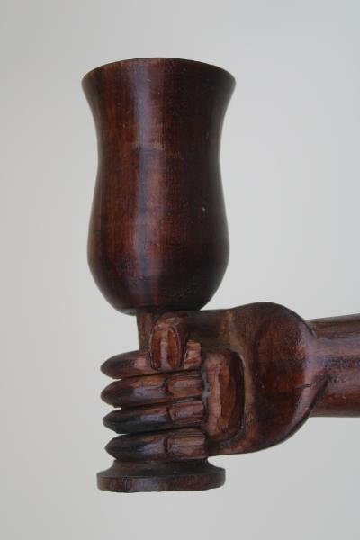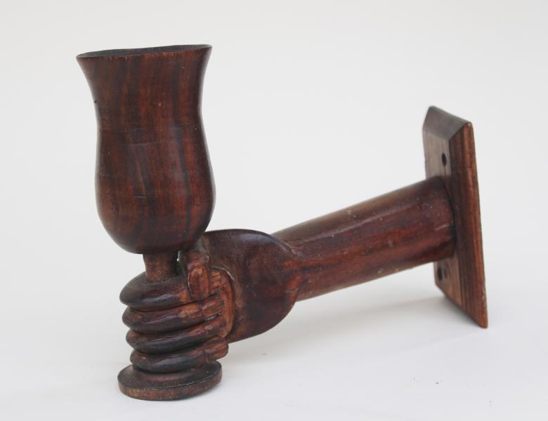 Rare Pitcairn Island wall mounted hand holding goblet inscribed 'Thinking of you from Pitcairn Island Aug 2 1937'