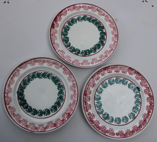 Sponge Ware pottery is seldom marked, and yet a factory would use the same blanks for a number of decorative styles , so why didn't they mark every piece. It cost time therefore money to mark an item , and possibly not economic on the cheaper range ?.Any way three plates one impressed mark for George Jones, late 19th century.
