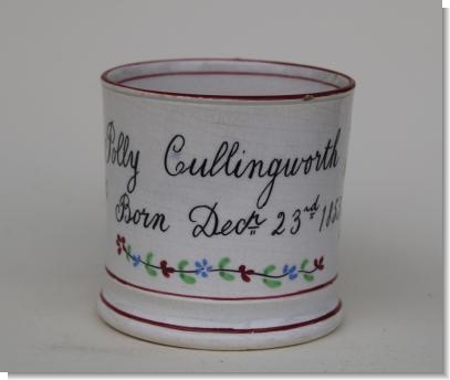 Polly was born as her mug says on 23.12.1855 in Holbeck a suburb of Leeds, but this style of decoration I would not usually associate with this great potting city.