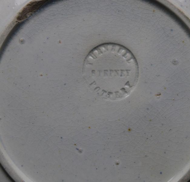 A pottery is mentioned in directories 1852-60, but operated from late 18th century onwards (pottery described as "below Stepney Hill" mentioned in directory of 1790, probably founded by Dale and Head in 1786). Joseph Burn succeeded Thomas Bell and Company at the pottery originally called the 'New Pottery' but renamed 'Stepney Bank Pottery' in 1816 Burn was succeeded by John Charlton. Burn used a Newcastle arms mark similar to Fell and Company of St Peter's Pottery in a probable deliberate attempt to pass off his products as those of the leading Tyneside firm. The pottery had nine other firms occupying the buildings (so possibly Turnbull was one of these) until it was demolished in 1875, to make way for Byker Bridge. A new pottery was then built on the opposite side of the road by John Wood. |