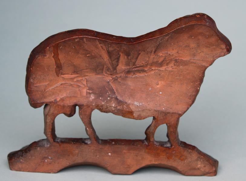 Some potters could be very resourceful, here clearly taking a mold from a popular 19th century cast iron door stop to create his own door stop / chimney ornament.
