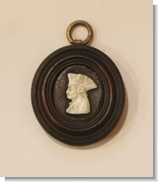 Frederick the Great, Portrait Plaque, white glass, circa 1800, after Tassie, profile portrait of Frederick wearing tricorn hat profile left.