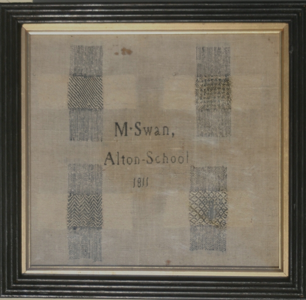 As can be seen in the samplers of E.Holloway & H.Stead it was normal for girls to sign there first sampler with just the her initial, one wonders why M.Swan was required to complete two almost identical damask darns , perhaps one just didn\\\\\\\\\\\\\\\'t meet the required standard .