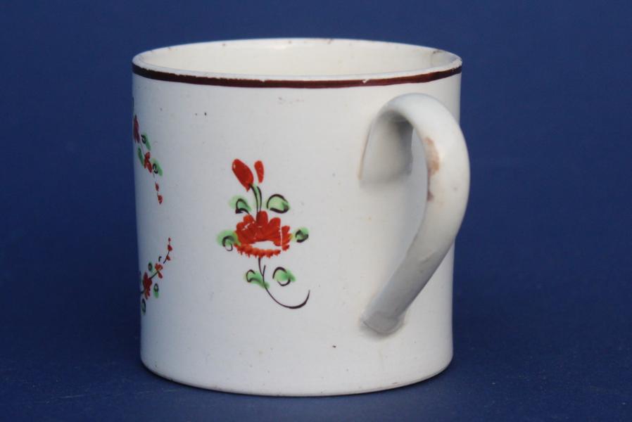 A great late 18th century creamware child's mug. Probably Yorkshire, Leeds area.