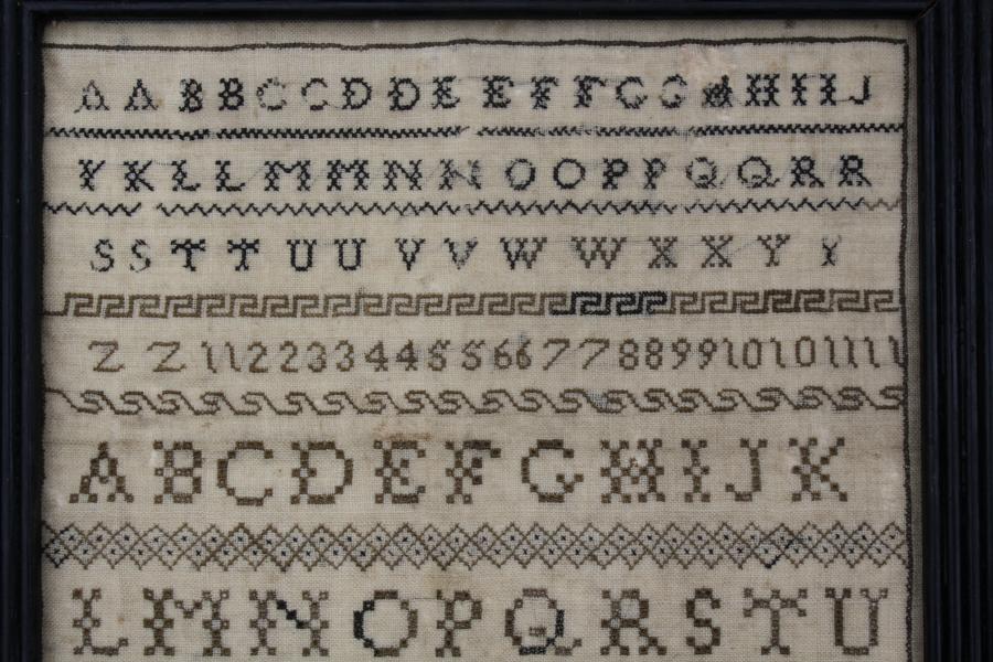 A very rare and interesting sampler worked by an English girl in School in France.