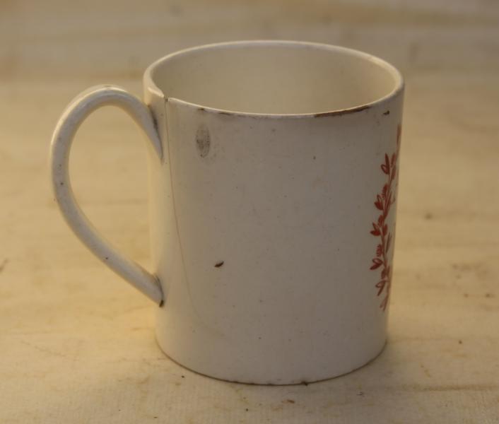 A delightful late 18th or very early 19th century creamware child's mug transfer printed in red . Possibly Leeds.