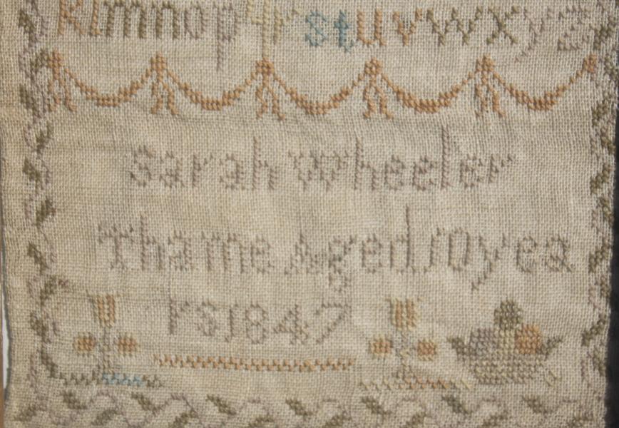 A lovely mid 19th century band sampler by Sarah Wheeler dated 1847 Thame.