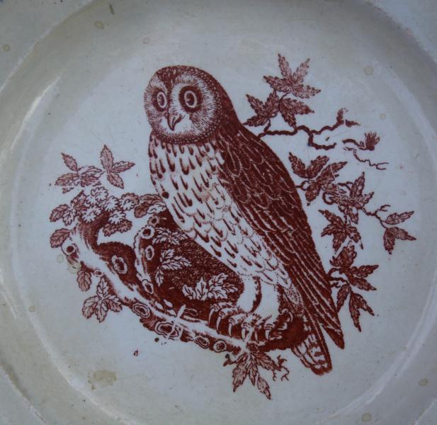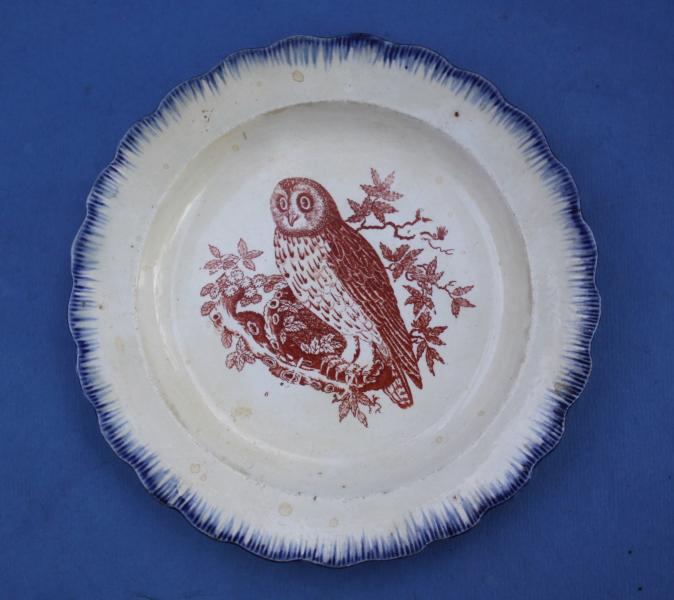 A wonderful early pearlware child's plate depicting a BARNOWL, from a Bewick Print I think.