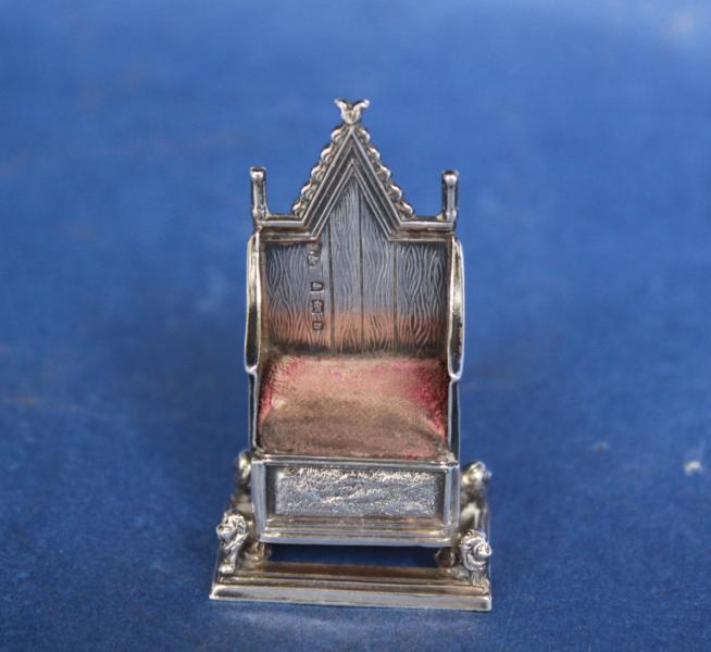 A rare and wonderful commemorative ! Pincushion, modeled as the CORONATION CHAIR.