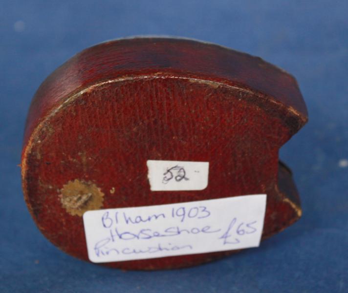 A relatively large horse shoe pin cushion dated to Birmingham 1903.