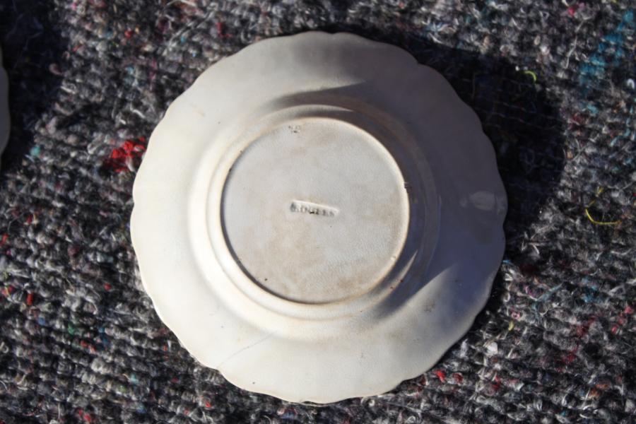 This is a lovely small ( 11cm diameter) creamware child's plate by Rogers of Longport, Stoke On Trent in Staffordshire. It is impressed ROGERS which was the mark used by the factory between 1784 & 1814 although it is believed that it may have been used until 1836. It is moulded with sprigs of flowers picked out in red, green and blue and has a central transfer printed name ROBERT.