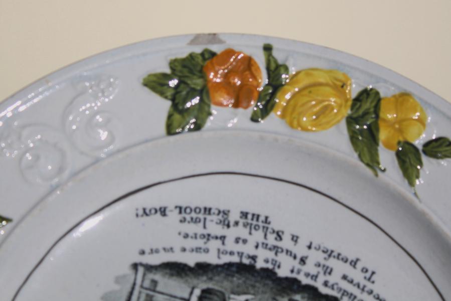 Really interesting image on this Childs plate , att.to Clews circa 1820 "HE RETURNS" The Holidays past the school once more, receives the student as before; To perfect in Scholastic-lore The School Boy.