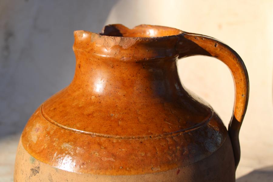 When a porcelain jug breaks its seems to be all over and yet an old crock, like an old man takes a few knocks , a worn bottom and lichen, seems to gain a personality !.