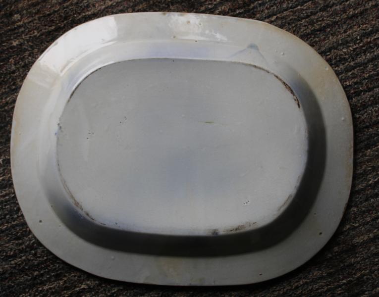 STRIKING FLOW BLUE & SPONGE DECORATED PLATTER.