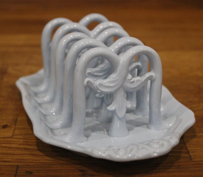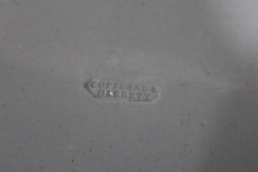 Over the years we have had a number of these solid body colour toast racks. Have seen them in this blue , a green and buff drab colour so it was a surprise to turn this one over and impressed mark COPELAND & GARRETT. c.1833-47.
