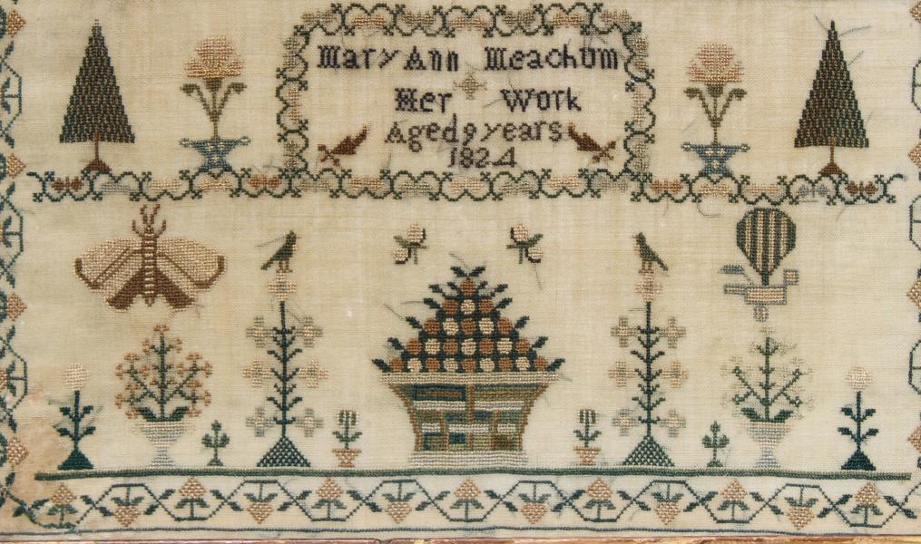 | MARY ANN MEACHAM 1824 Balloning Sampler |