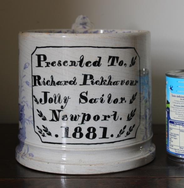This is a huge mug, a tad over 4 pints, presented to one Richard Pickhave in 1881.