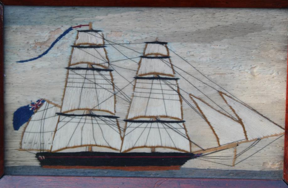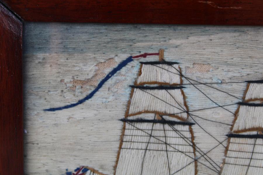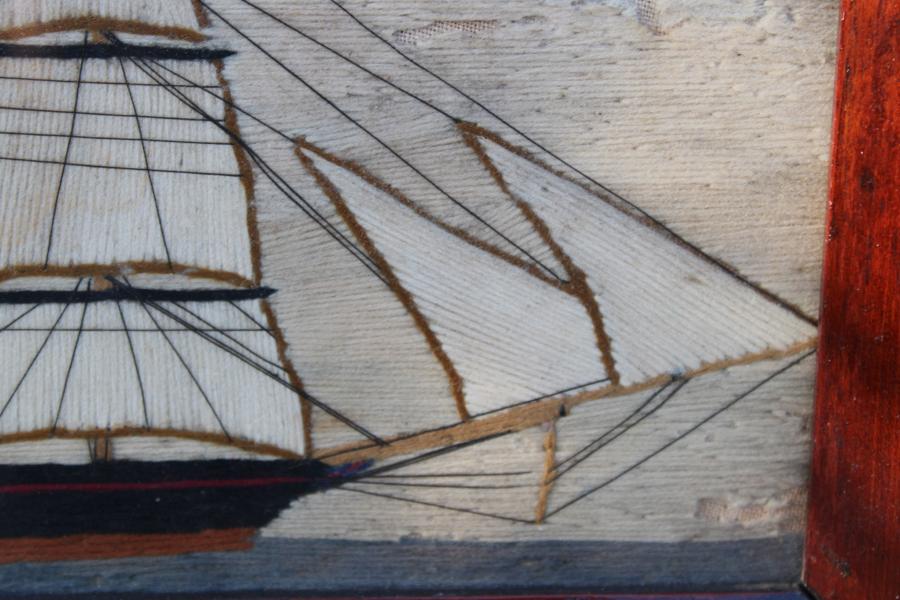 | SMALL 19th Century SHIP WOOLWORK PICTURE |
