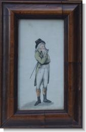 Pen & Ink with watercolour. Walnut frame 15.5 x 24 cm.