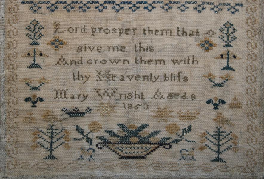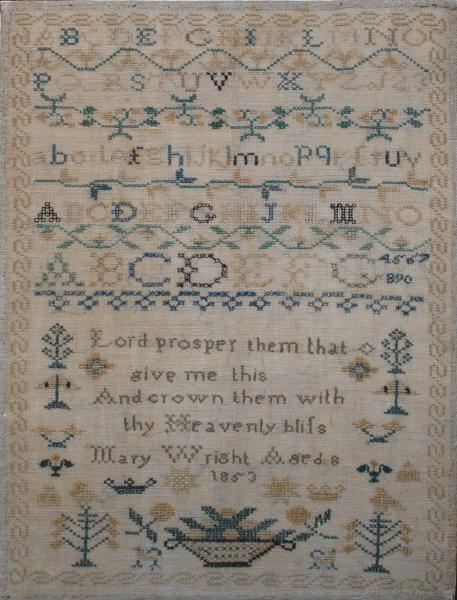 A classic 19th century sampler worked by Mary Wright aged only 8 in 1853.
