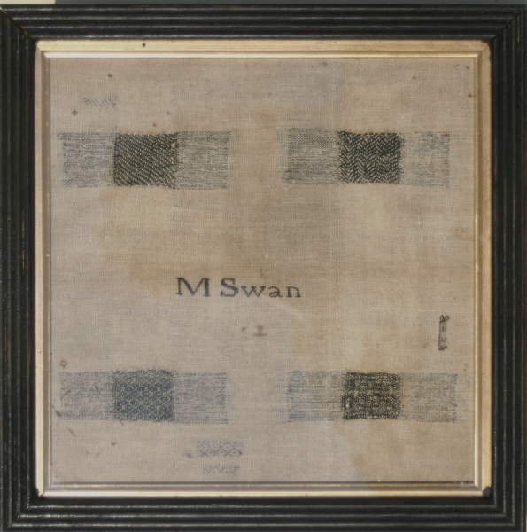 As can be seen in the samplers of E.Holloway & H.Stead it was normal for girls to sign there first sampler with just the her initial, one wonders why M.Swan was required to complete two almost identical damask darns , perhaps one just didn\\\\\\\\\\\\\\\'t meet the required standard .