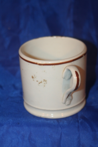 Rare late 19th century alphabet mug with the latters G H & I with a brown transfer print of ywo girls playing Tennis. A rare subject on pottery.